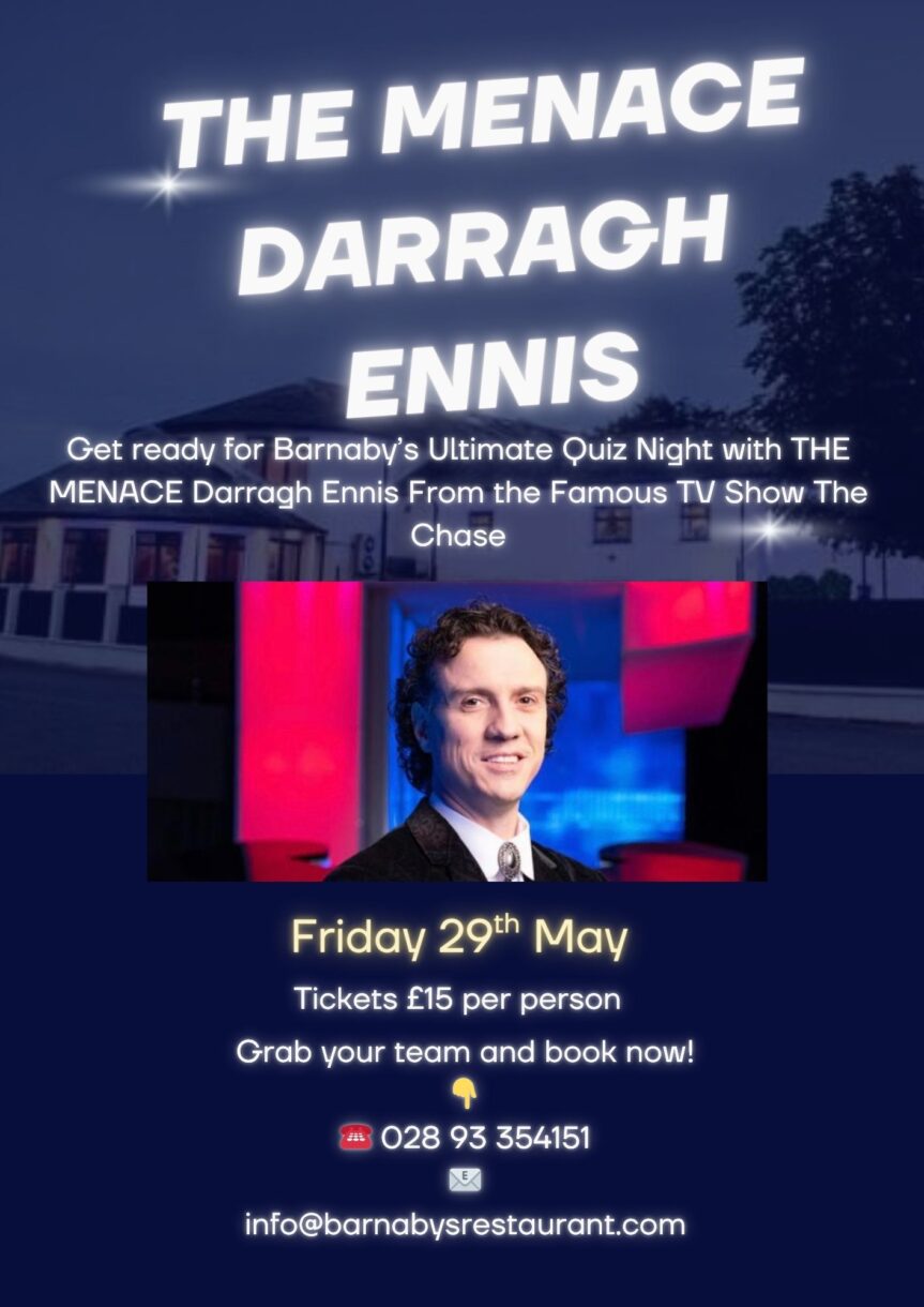 Barnabys Ultimate Quiz Night with THE MENACE Darragh Ennis From The Famous TV Show ‘The Chase’ Read More »